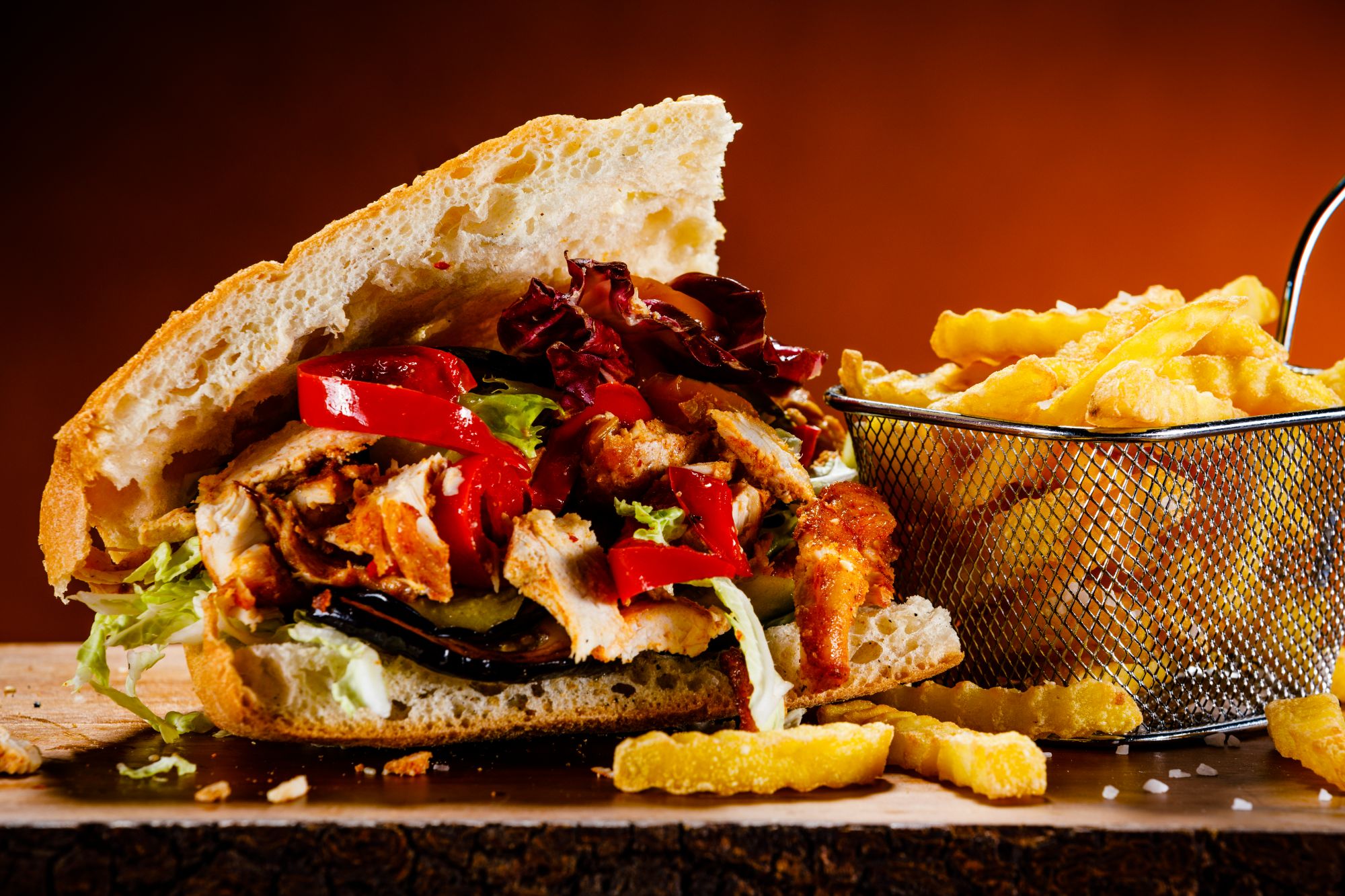 Soczyste plastry kebaba w towarzystwie świeżych warzyw i aromatycznego sosu, podane w miękkiej, lekko chrupiącej bułce. Prosto, klasycznie i pełne smaku. -